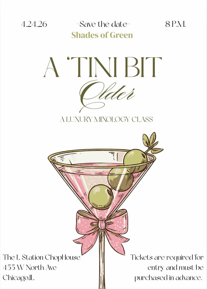 Kick off the celebration with an intimate mixology experience led by a professional bartender. Guests will enjoy curated light bites while learning to craft signature cocktails in a refined setting. Theme is shades of Green.