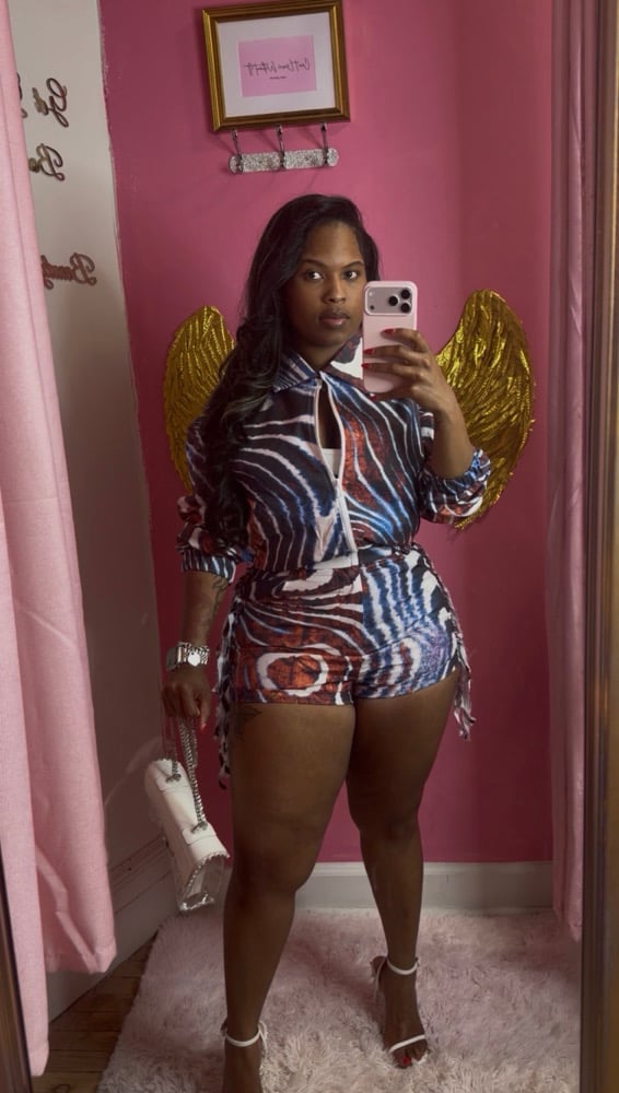 Step into your main character energy with the “Muse” 2-piece set—where effortless cool meets statement style. This set features fringe-detailed shorts that move with every step and a matching bomber jacket that adds just the right amount of edge. With subtle hints of royal blue woven into the design, this look was made to stand out without trying too hard.